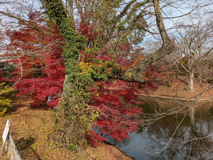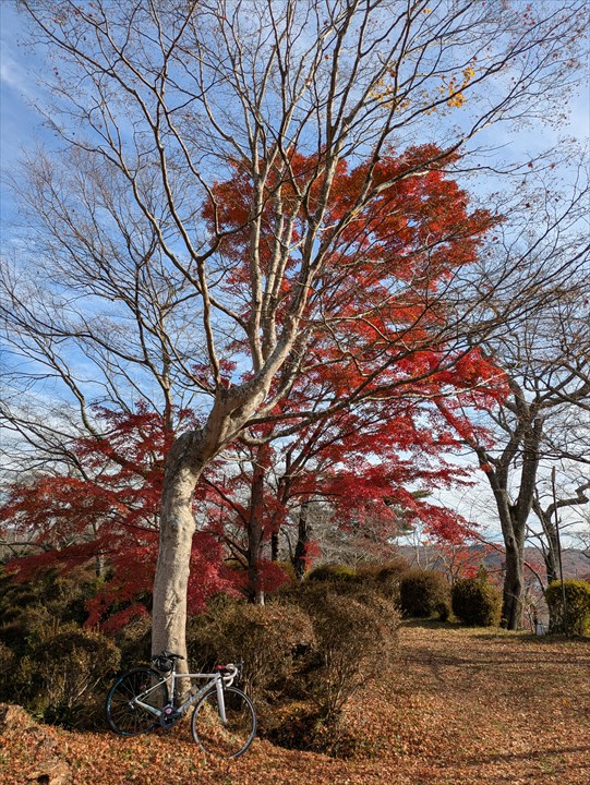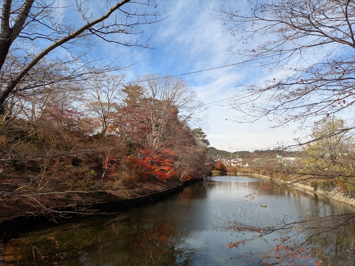 棚倉城の紅葉はもう終盤だった。自転車を担いで土塁に登ってみた。人が少なくて座れる場所もあってなかなかによい場所。ひとまずカロリー補給をする。本物のパン屋さんのクロワッサンはおいしい。