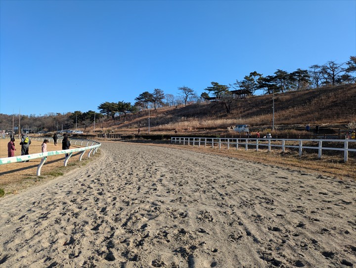 さらに右に曲がって東へ。追い風と緩い下り坂で一息つく。右側の乗馬クラブ、「カリフォルニア・ライディング」で馬がぐるぐる回ってる。かっこいいな。しかし、なぜにカリフォルニアなのかと余計な考えが頭をめぐる。